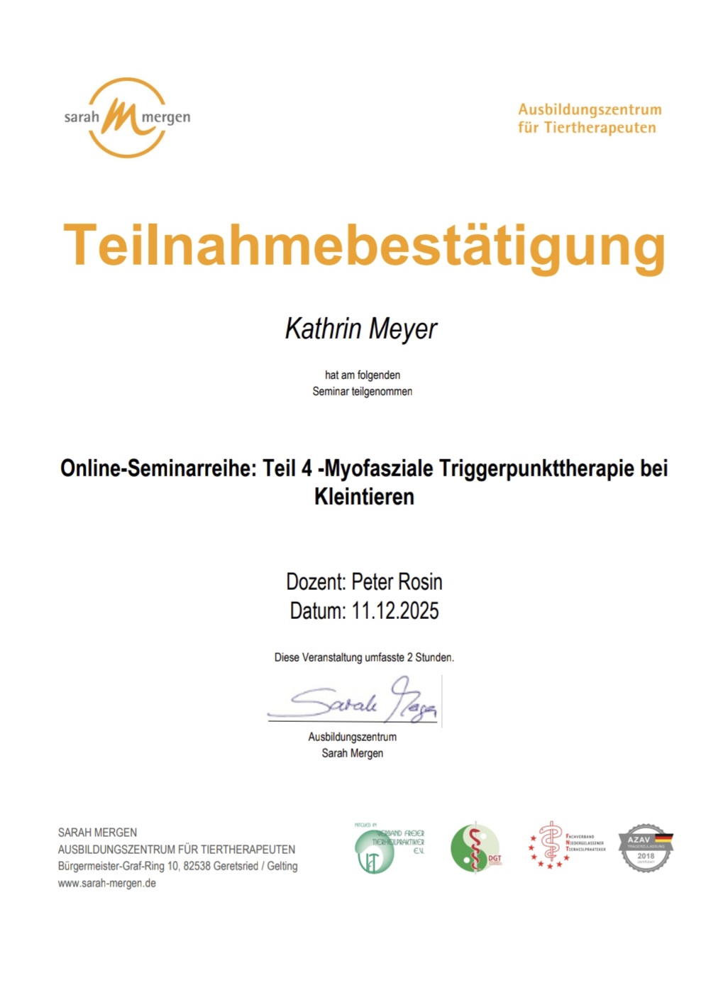 2025 Seminar "Myofasziale Triggerpunkttherapie bei Kleintieren" (Sarah Mergen Ausbildungszentrum, Peter Rosin)