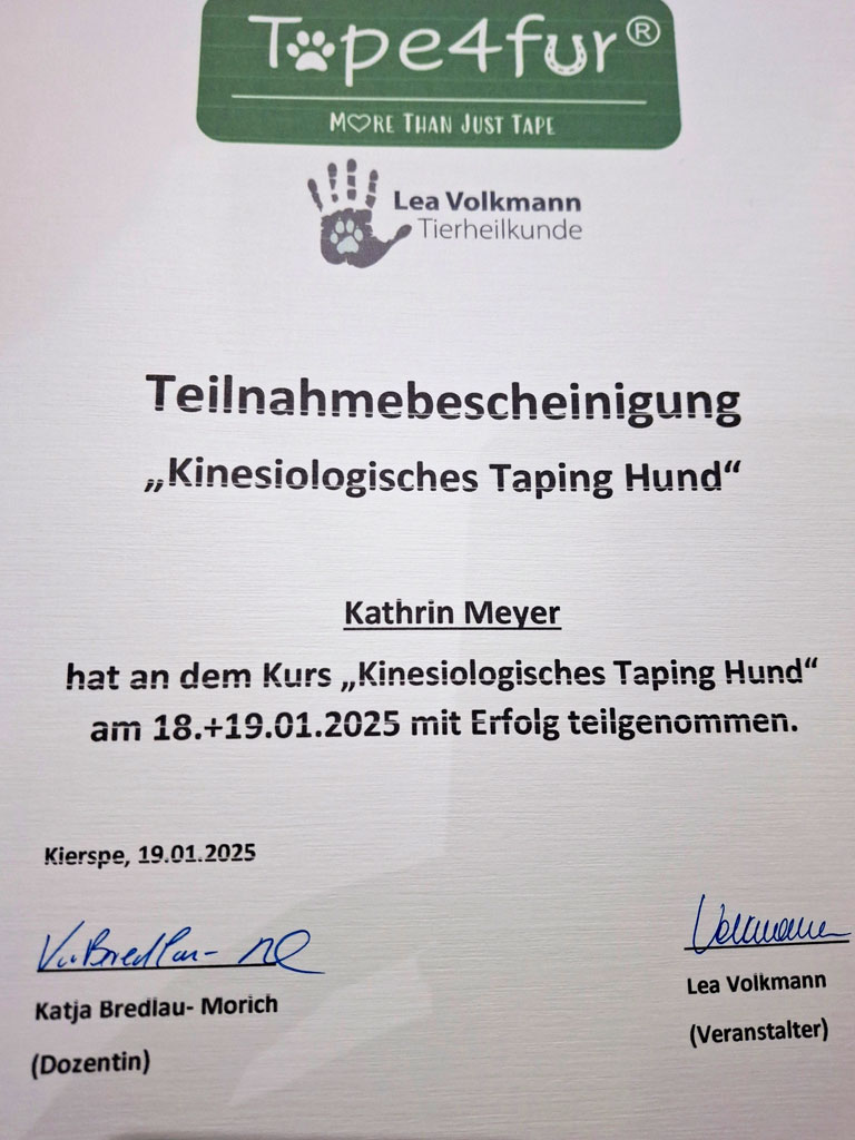 2025 Seminar "Kindesiologisches Taping Hund" (Tape4Fur, Katja Bredlau-Morich)