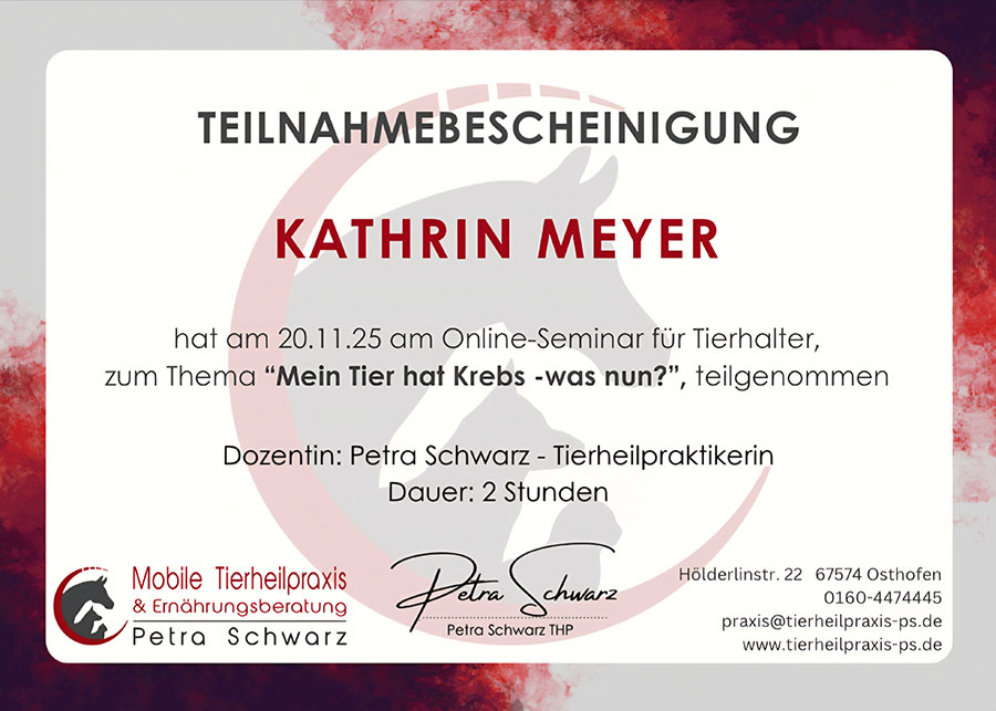2025 Seminar "Mein Tier hat Krebs - was nun?" (Petra Schwarz - Tierheilpraktikerin)